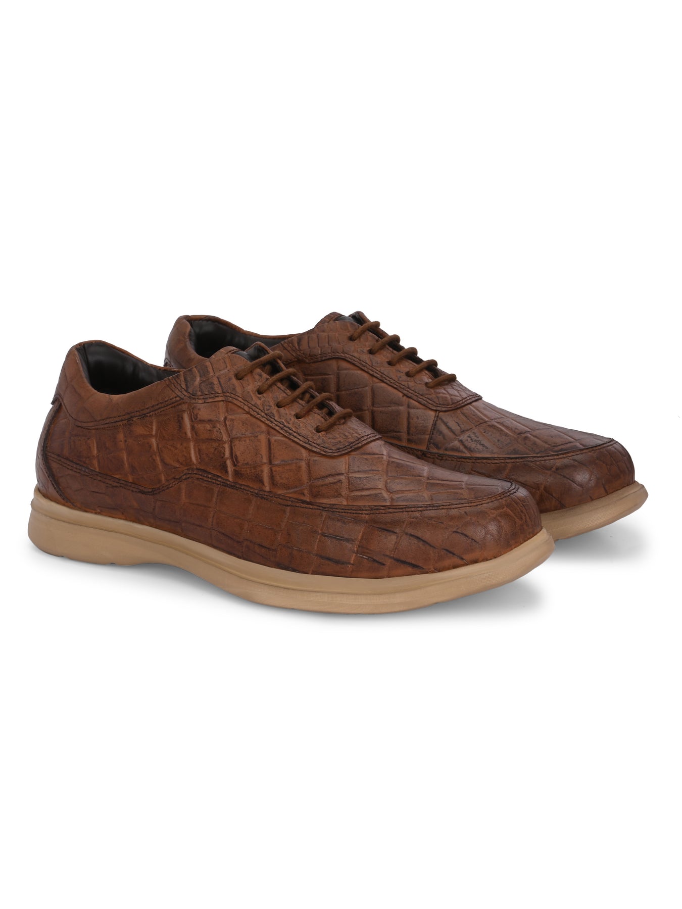 CARLO ROMANO BY WASAN TAN COLOR ITALIAN PLATE CROCO PRINT LACE UP LEATHER SHOES  FOR MEN