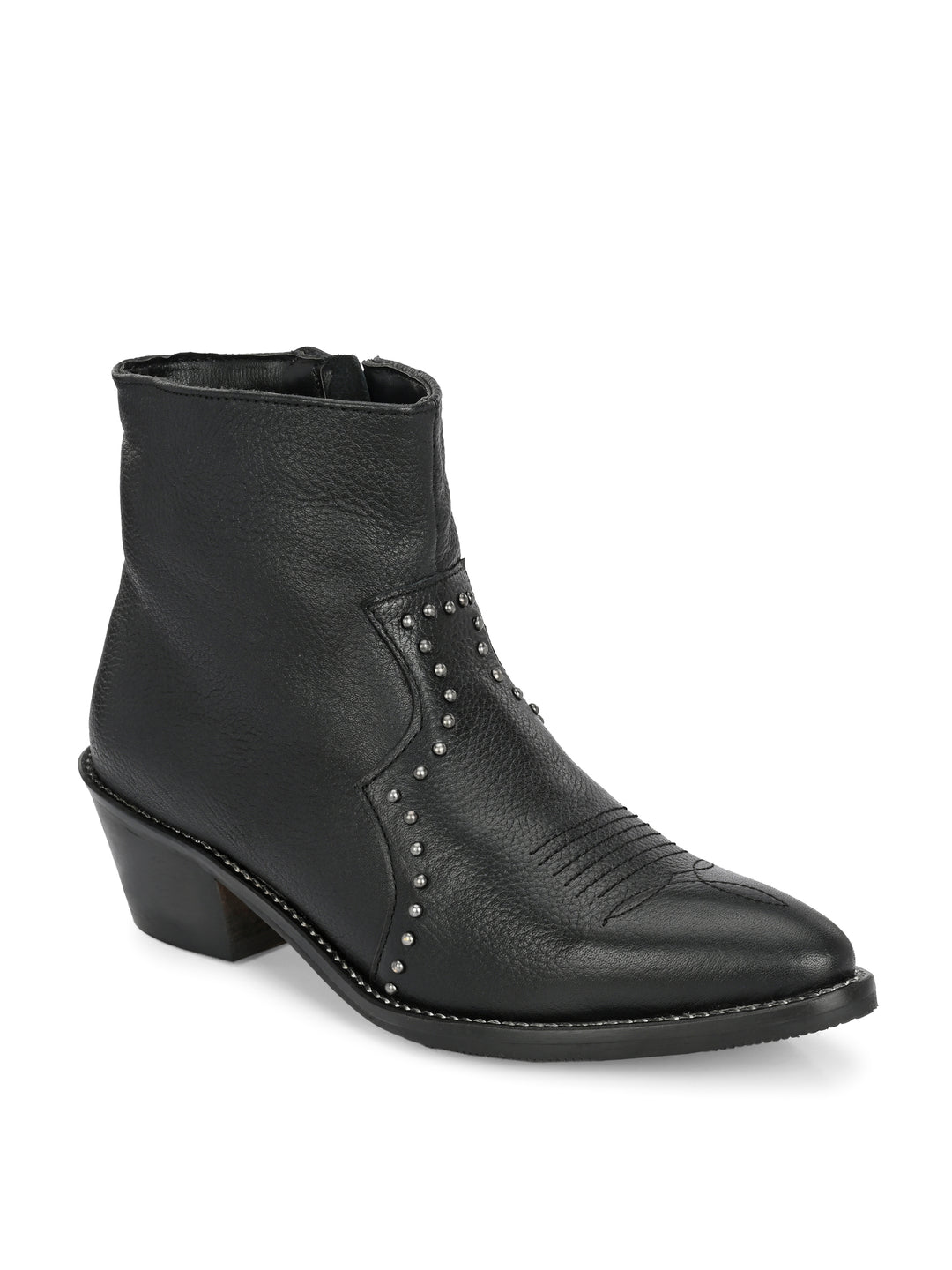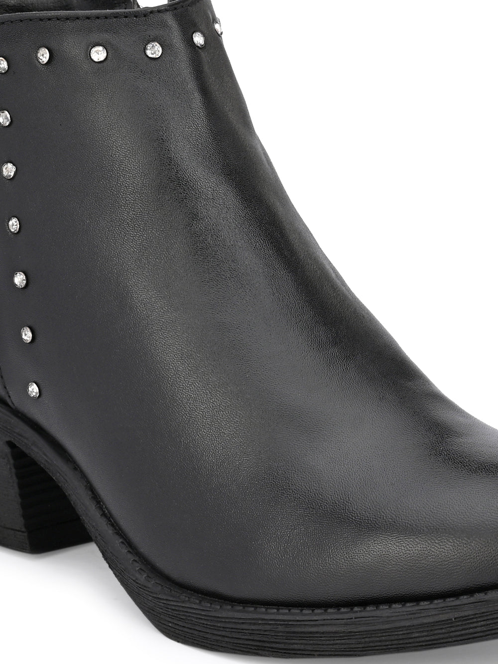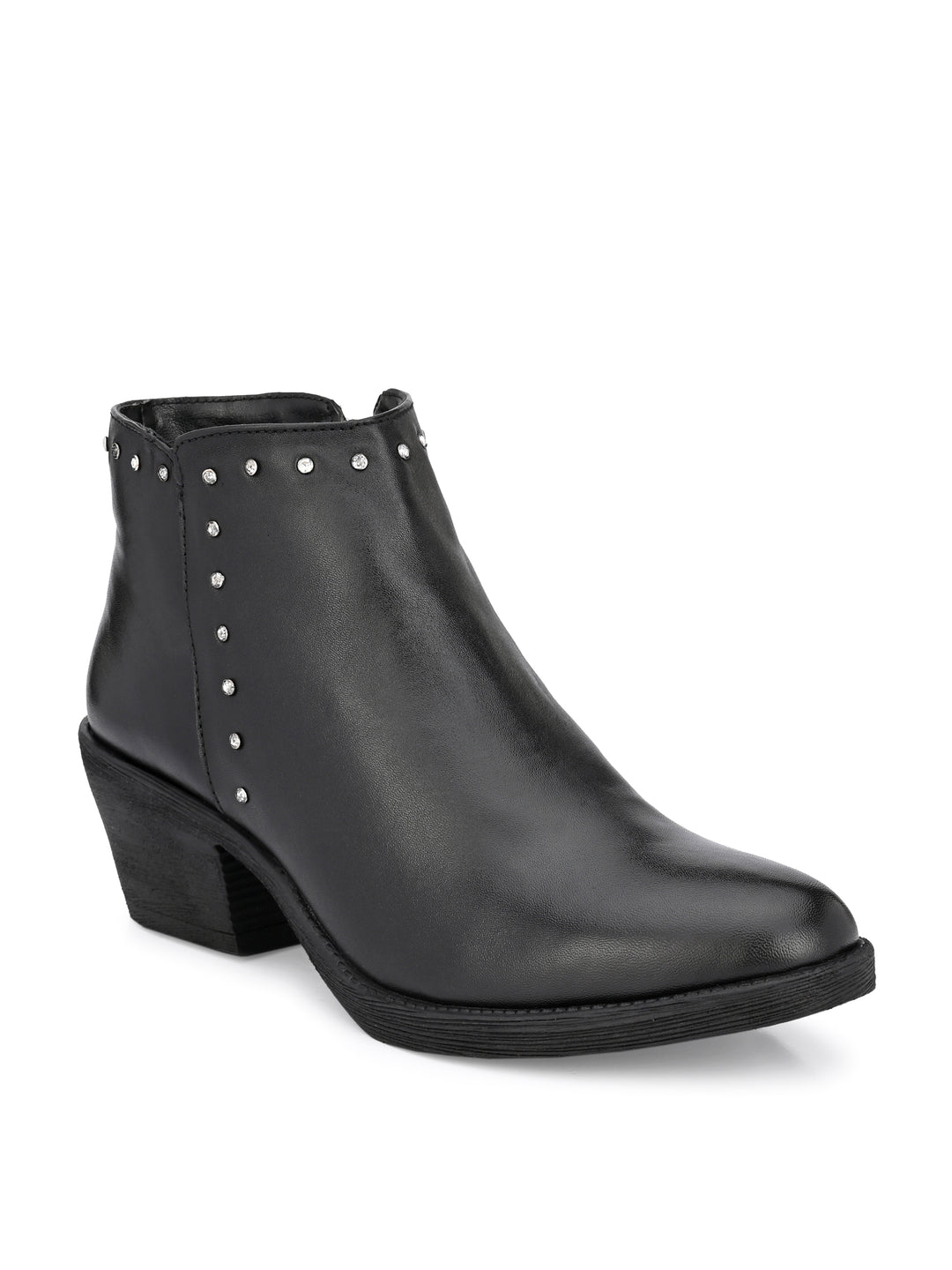 GENUINE LEATHER DAIMOND SOLID PRINT ANKLE BOOT