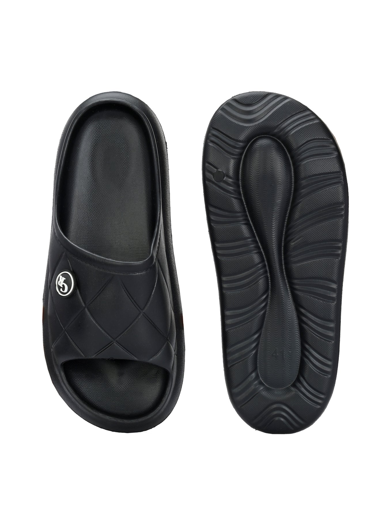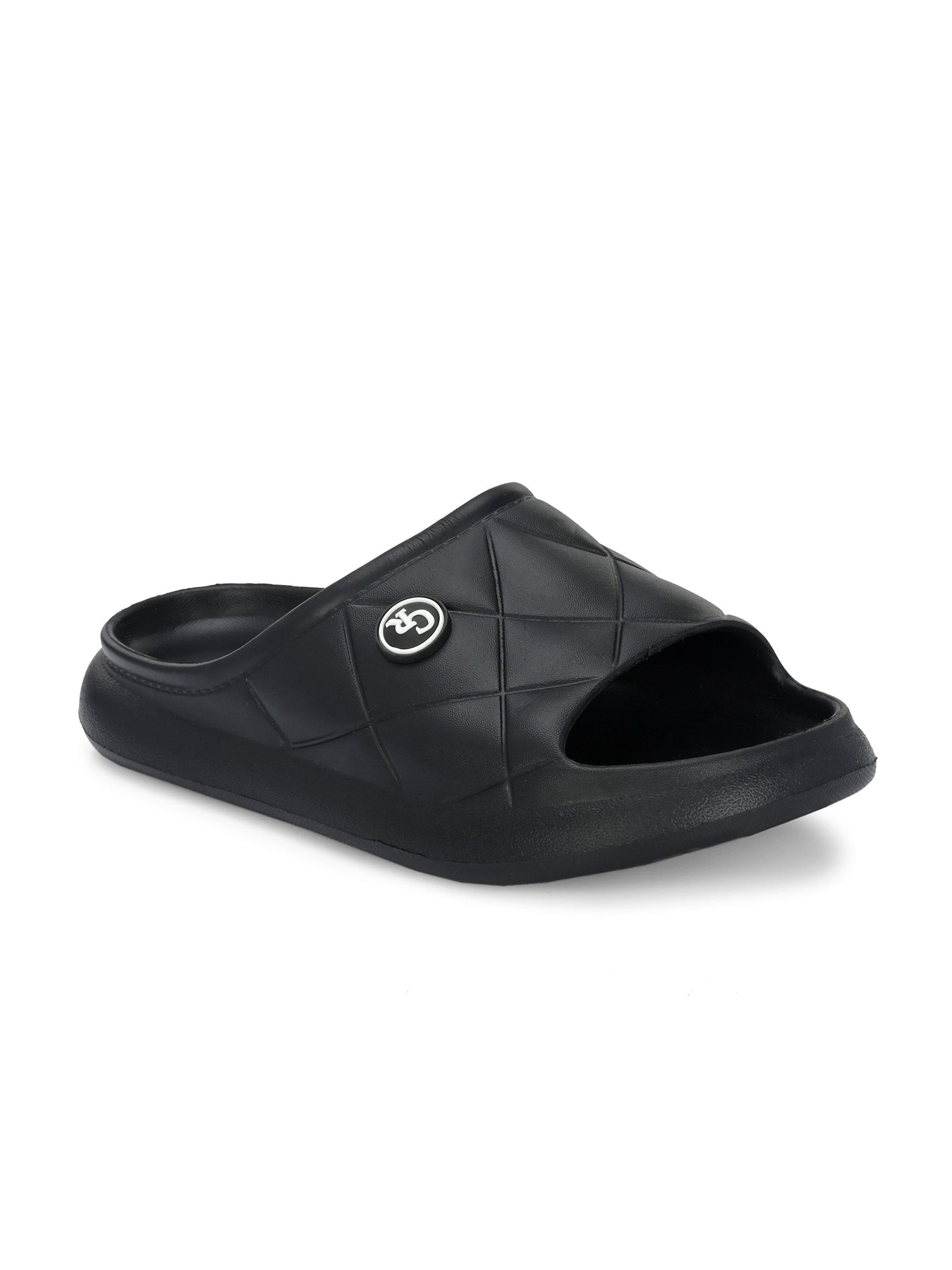 Carlo Romano Black Colour EVA Sliders For Men Trending design Anti-slip sole Sweat free Super flexible Ergonomic and cushioned footed