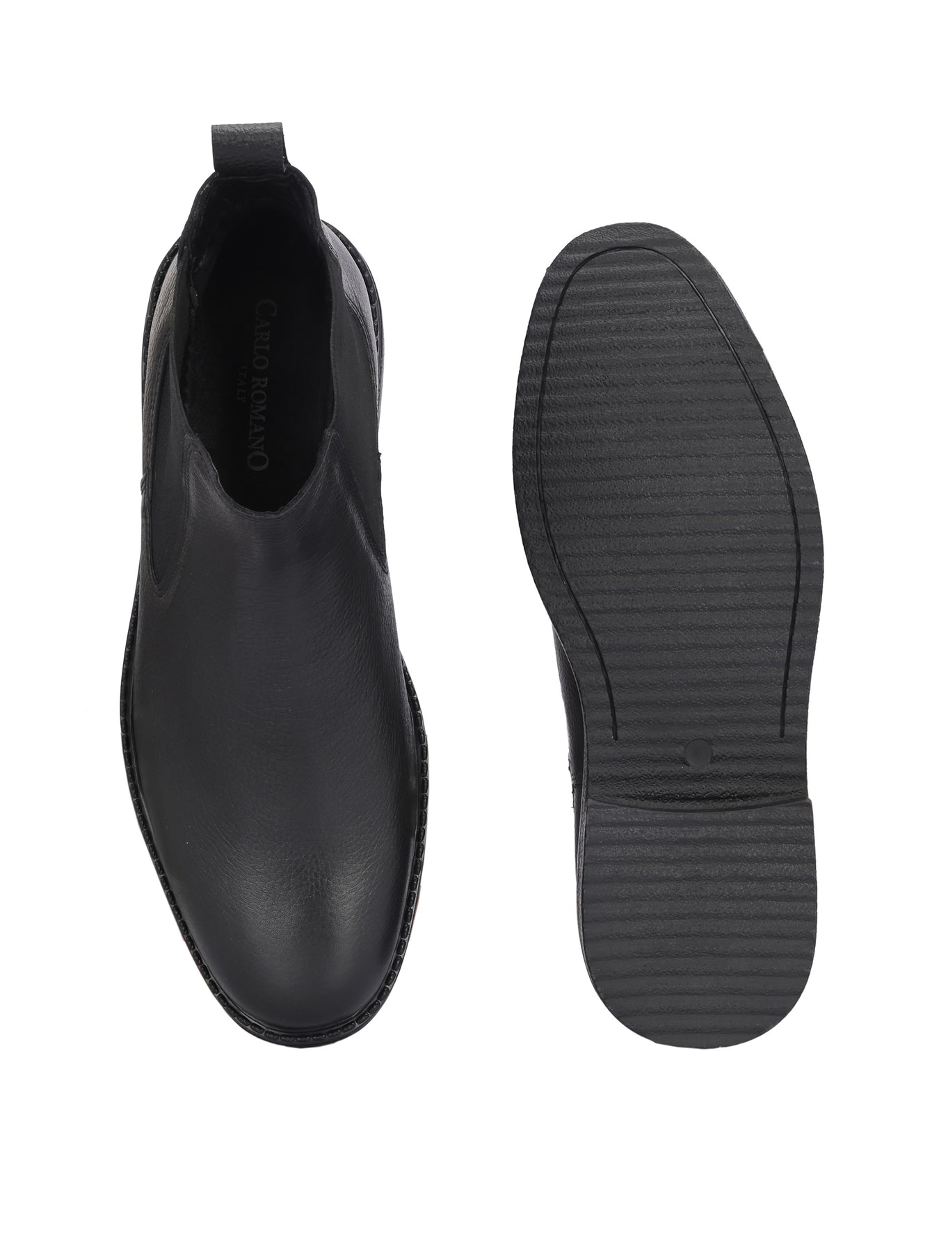 CARLO ROMANO BLACK COLOR BLACK GENUINE LEATHER SLIP-ONS ANKLE BOOT FOR MEN