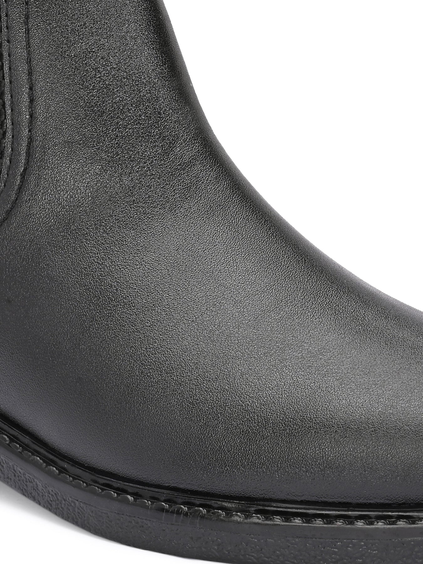 Occasion - Party & Office Ankle Height- 12 cms Type- Casual Pattern- Solid Upper Material- Vegan Leather Inner Material- Synthetic Lining Sole Material- Thermoplastic Rubber Closure- Slip-Ons Care Instructions- Do not wash; only use shoe cream and liquid spray. Shipping Policy- Orders will be delivered within 5 to 7 working days.