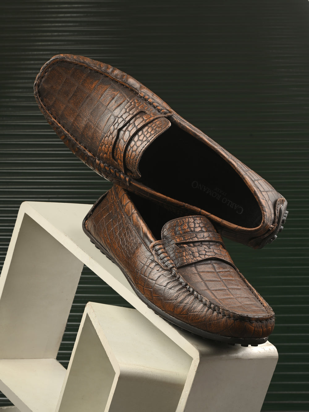 Carlo Romano Brown Italian croco printed Genuine Leather Loafer moccasin shoe for men