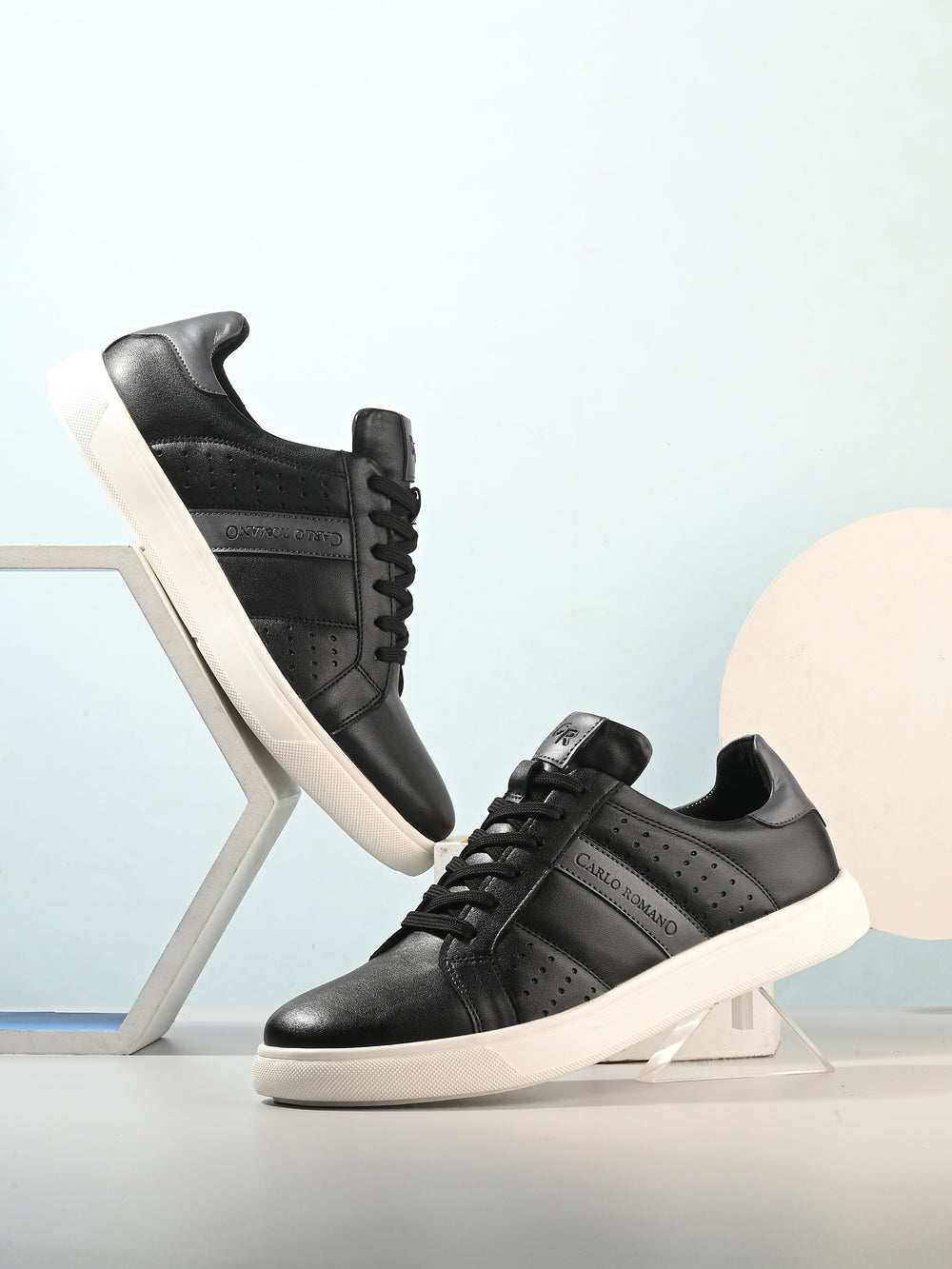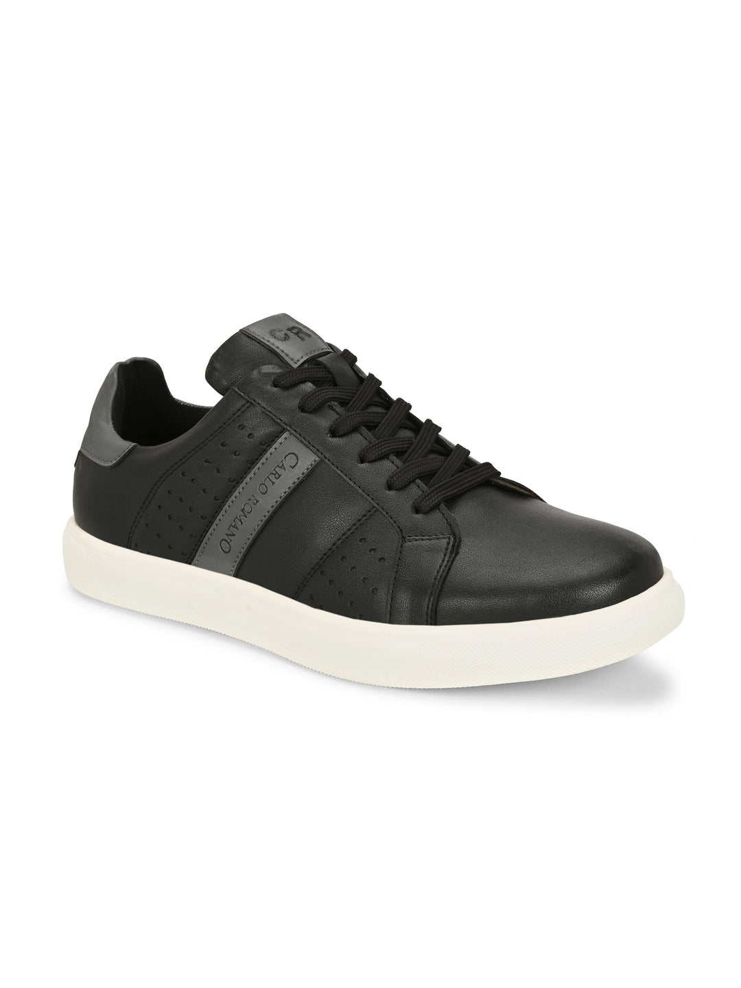 CARLO ROMANO BY WASAN BLACK GREY COLOR LIGHT WEIGHT VEGAN LEATHER SNEAKER FOR MEN