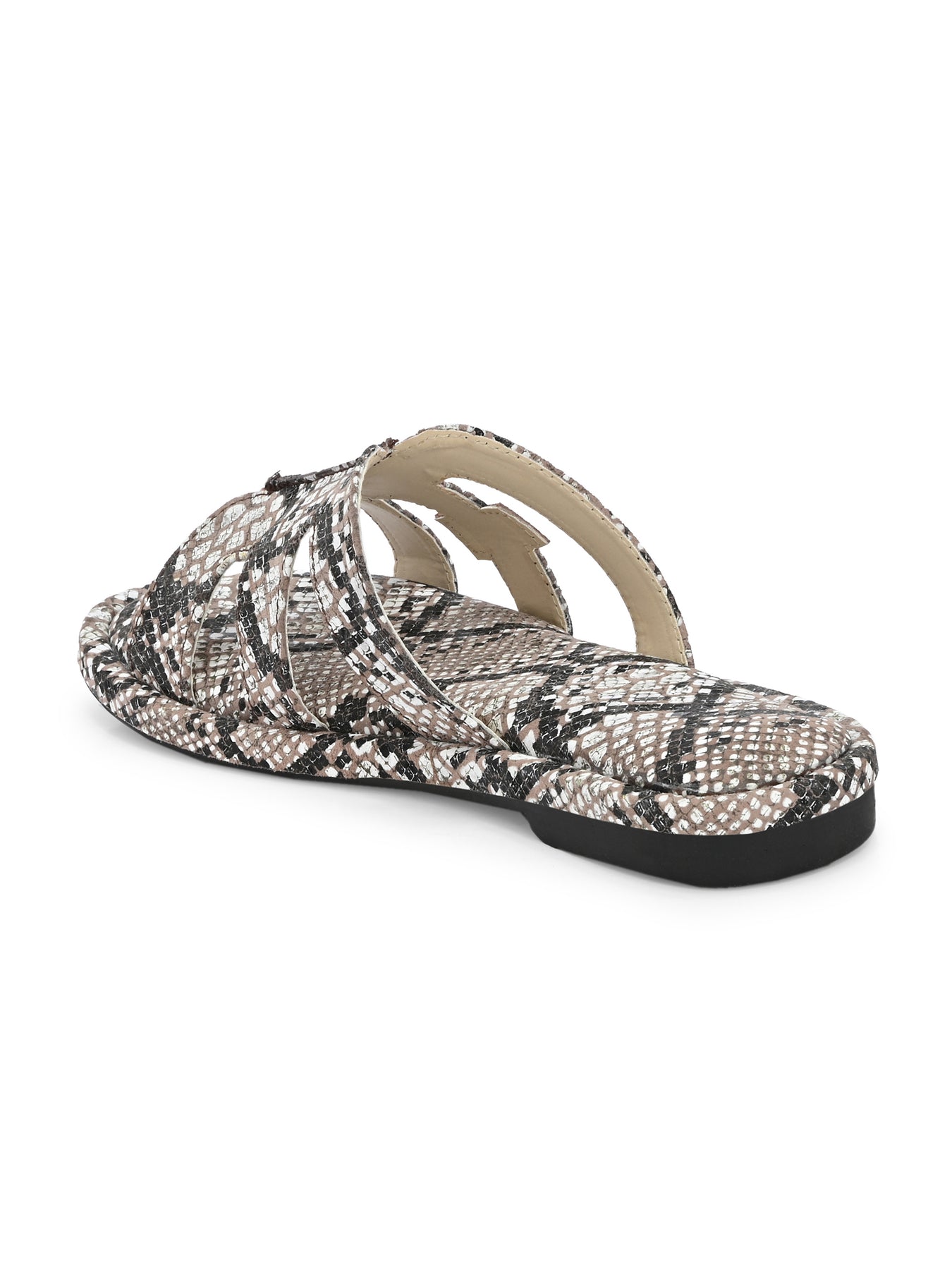 CARLO ROMANO BY WASAN BLACK WHITE COLOR PREMIUM STYLISH WOMEN'S SNAKE PRINTED SLIPPER