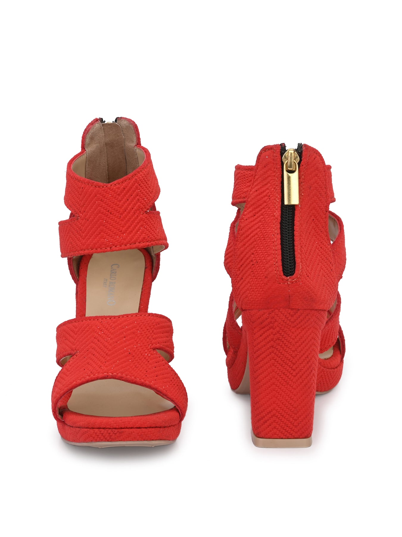 CARLO ROMANO by Wasan Shoes Women's Italian Shiny Textile Light Weight Stylish High Heel Sandal