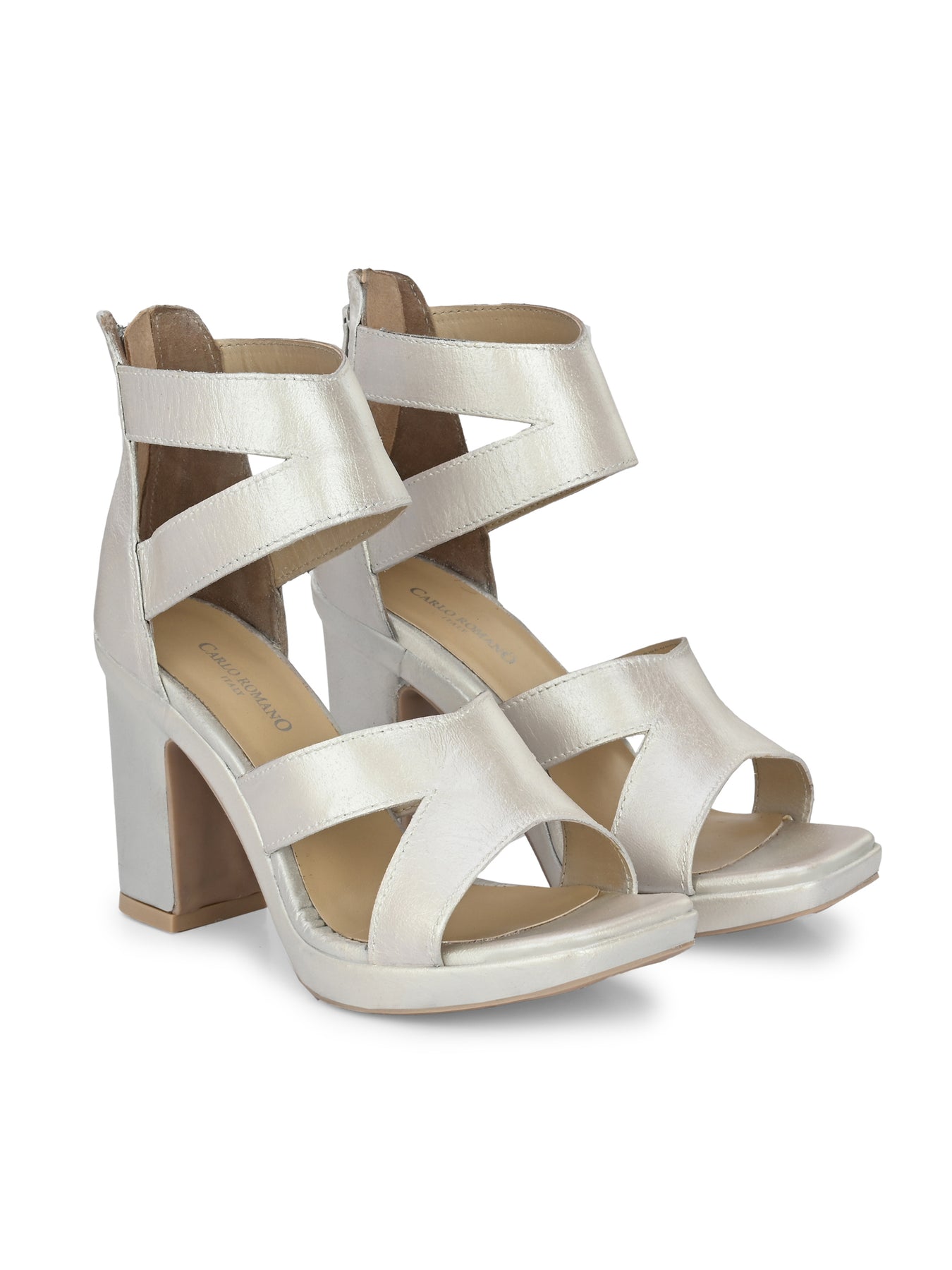 Women's Genuine Metallic Leather Stylish High Heel Sandal
