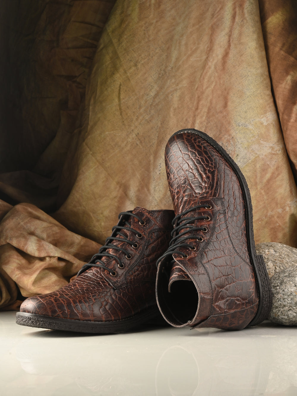 CARLO ROMANO BROWN COLOR PREMIUM RANGE ITALIAN CROCODILE PRINTED LEATHER BOOT FOR MEN