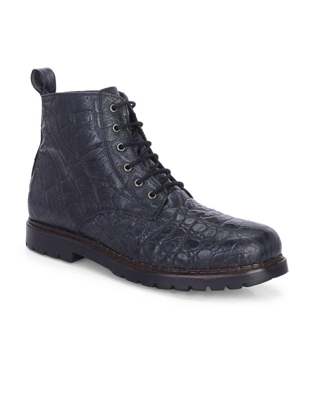 CARLO ROMANO BY WASAN BLACK GREY COLOR PREMIUM STYLISH CROCO PRINTED LEATHER BOOTS FOR MEN