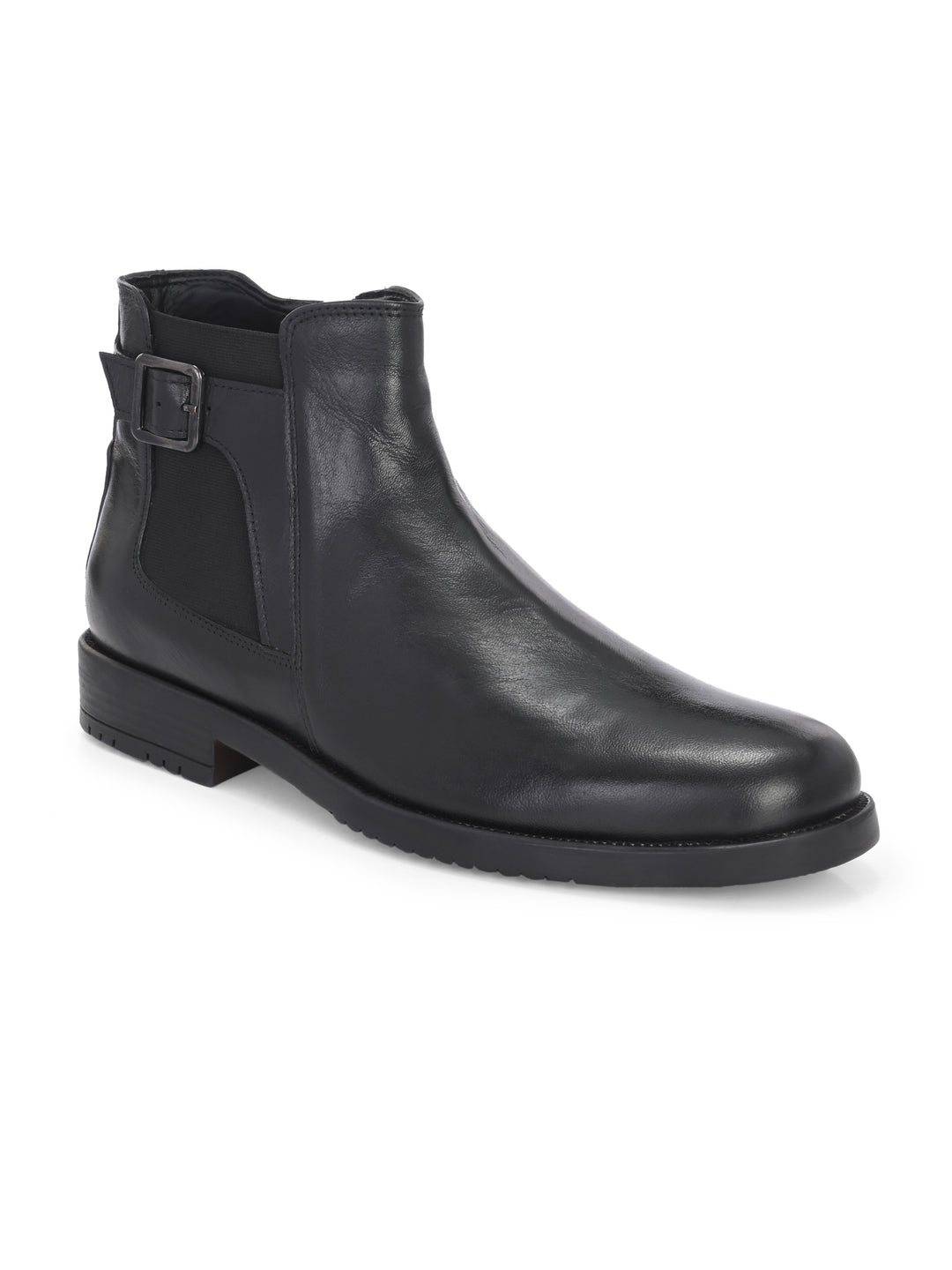 CARLO ROMANO BLACK COLOR BLACK GENUINE LEATHER SLIP-ONS ANKLE BOOT FOR MEN