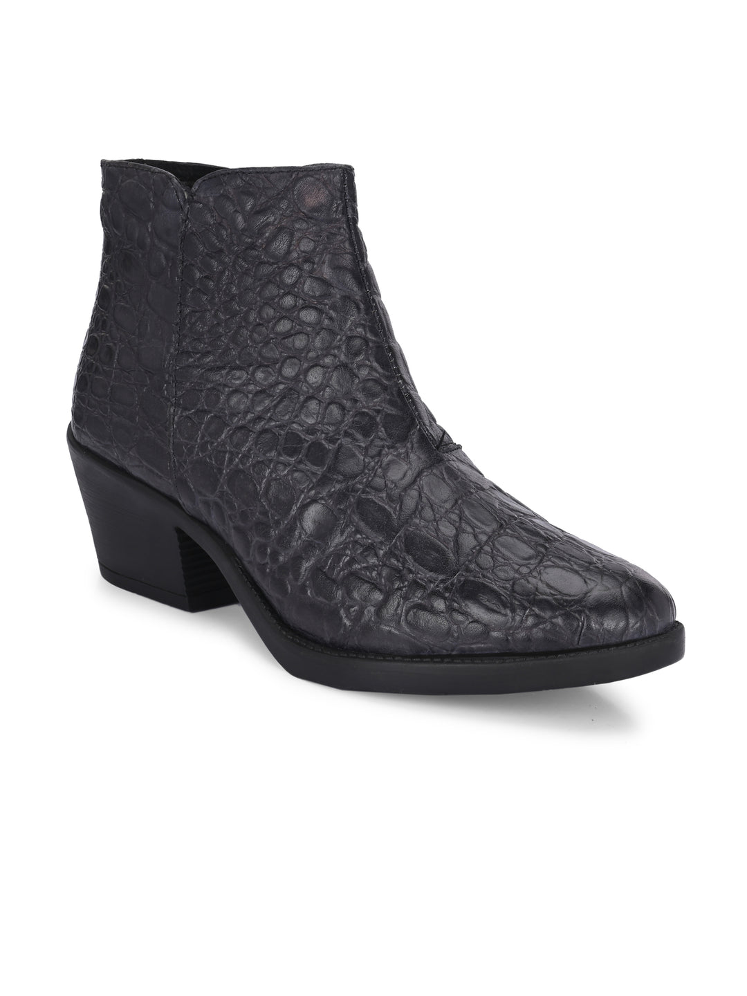 CARLO ROMANO BY WASAN BLACK-GREY COLOR VEGAN LEATHER PRINT LACE-UP ANKLE BOOTS WITH ZIP FOR WOMEN