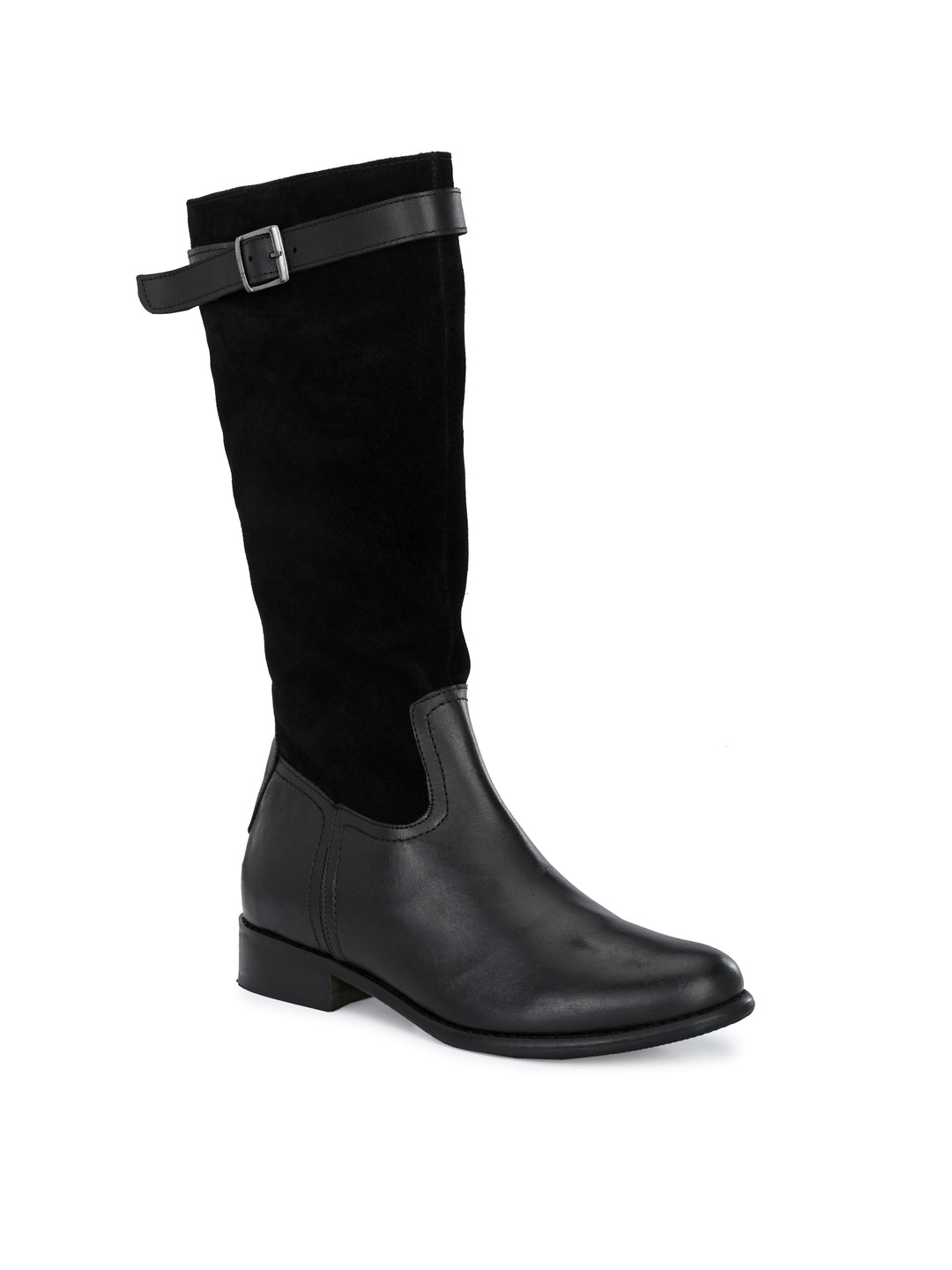 CARLO ROMANO BY WASAN GENUINE LEATHER BLACK COLOUR KNEE LENGHT BOOT FOR WOMEN
