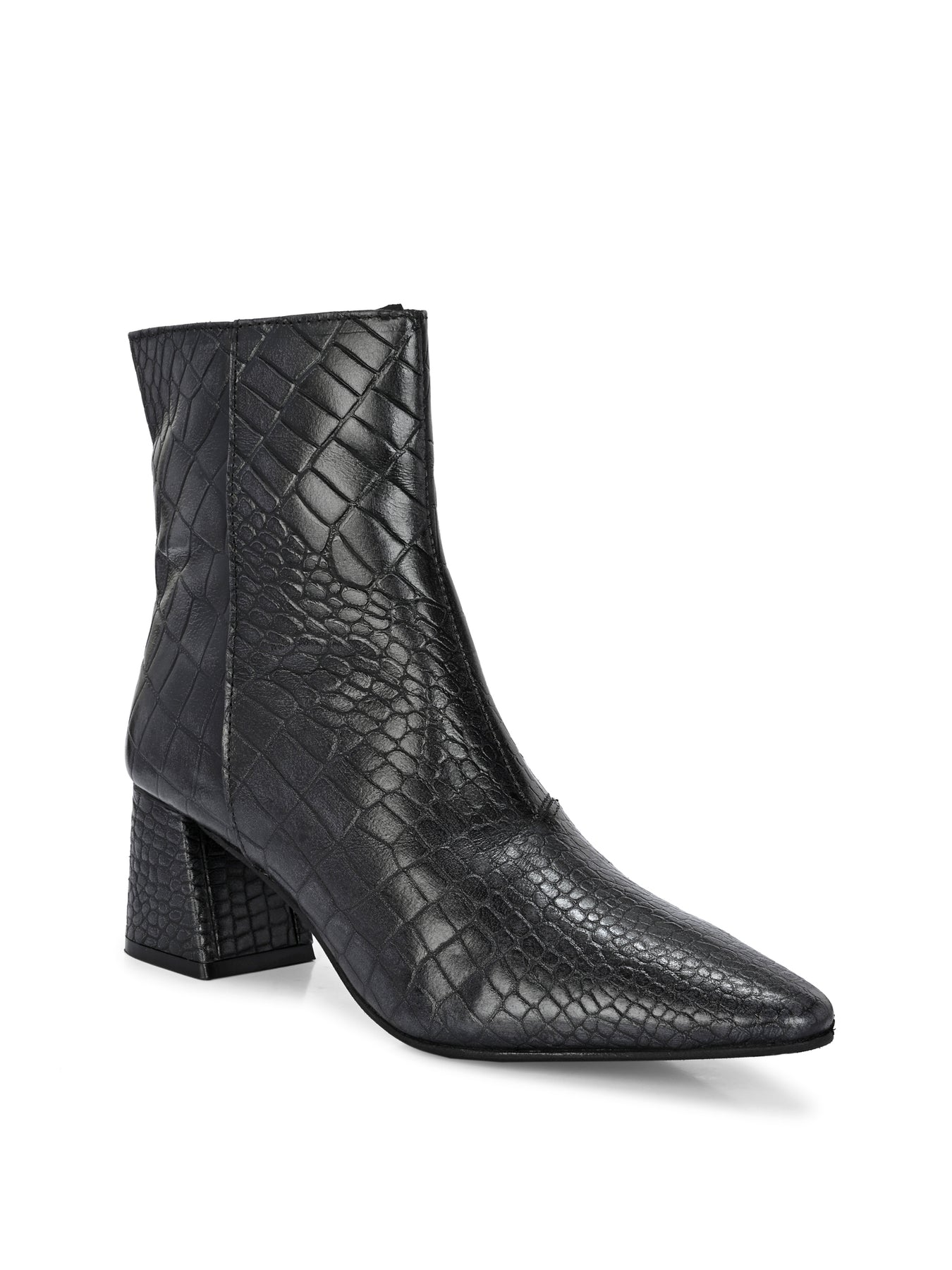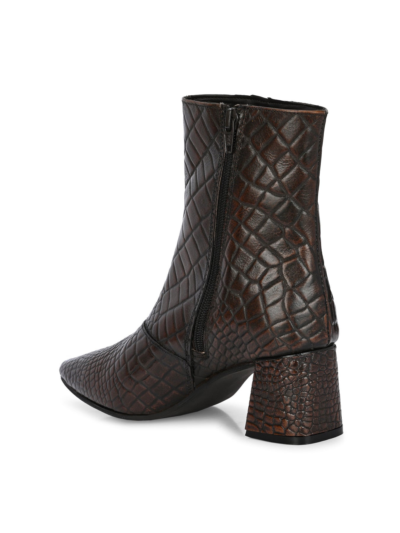 CARLO ROMANO BY WASAN CROCO PRINT LEATHER WITH ZIP BLOCK HEEL ANKLE BOOT FOR WOMEN