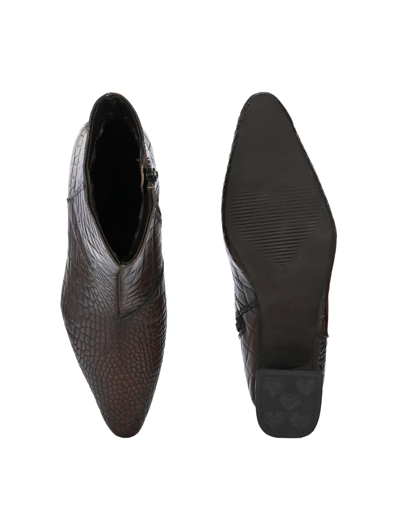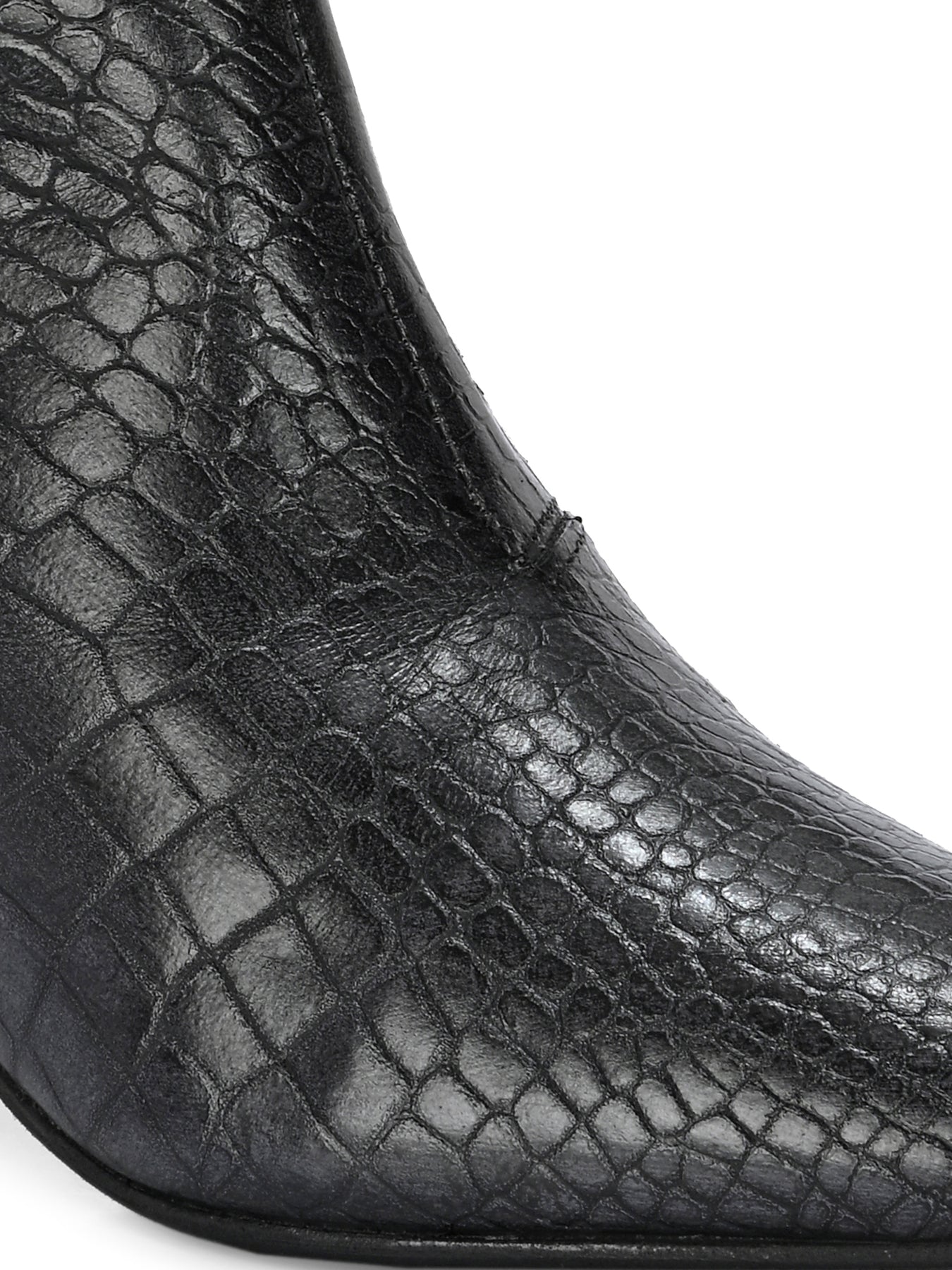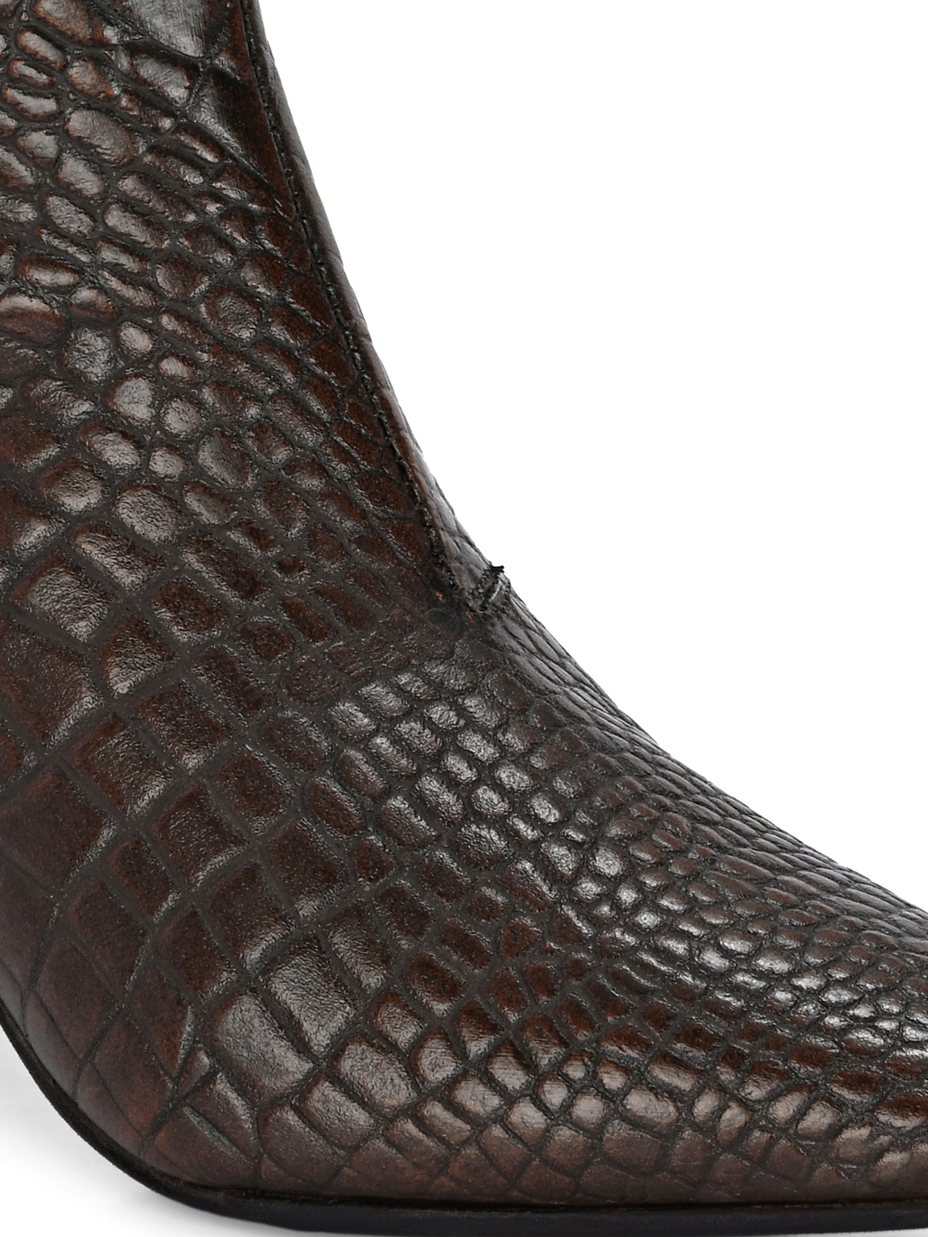 Occasion - Party & Office Ankle Height- 15 cms Type- Casual Pattern- Croco Print Upper Material- Genuine Leather Inner Material- Synthetic Lining Sole Material- Tunit Closure- Slip-on with Zip Care Instructions- Do not wash; only use shoe cream and liquid spray. Shipping Policy- Orders will be delivered within 5 to 7 working days.
