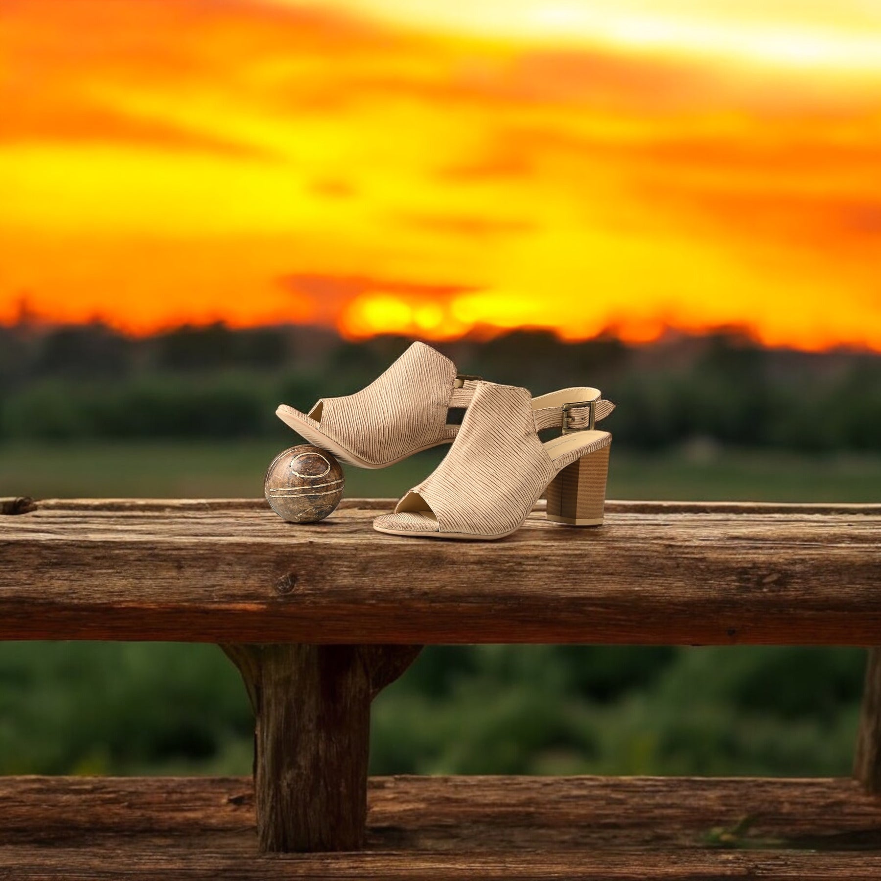 CARLO ROMANO BEIGE COLOR ITALIAN LV PRINTED SUEDE LEATHER HEEL SANDAL FOR WOMEN