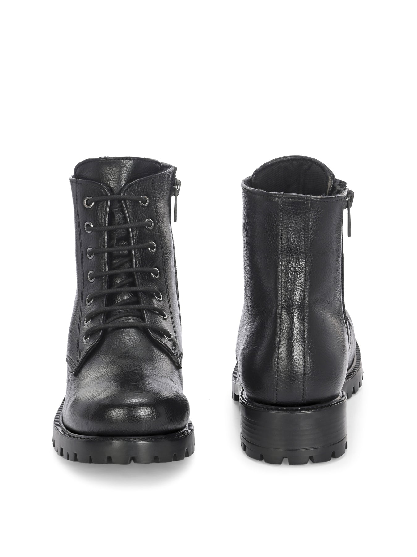 CARLO ROMANO BY WASAN BLACK COLOR VEGAN LEATHER LACE-UP WITH ZIP ANKLE BOOTS FOR WOMEN
