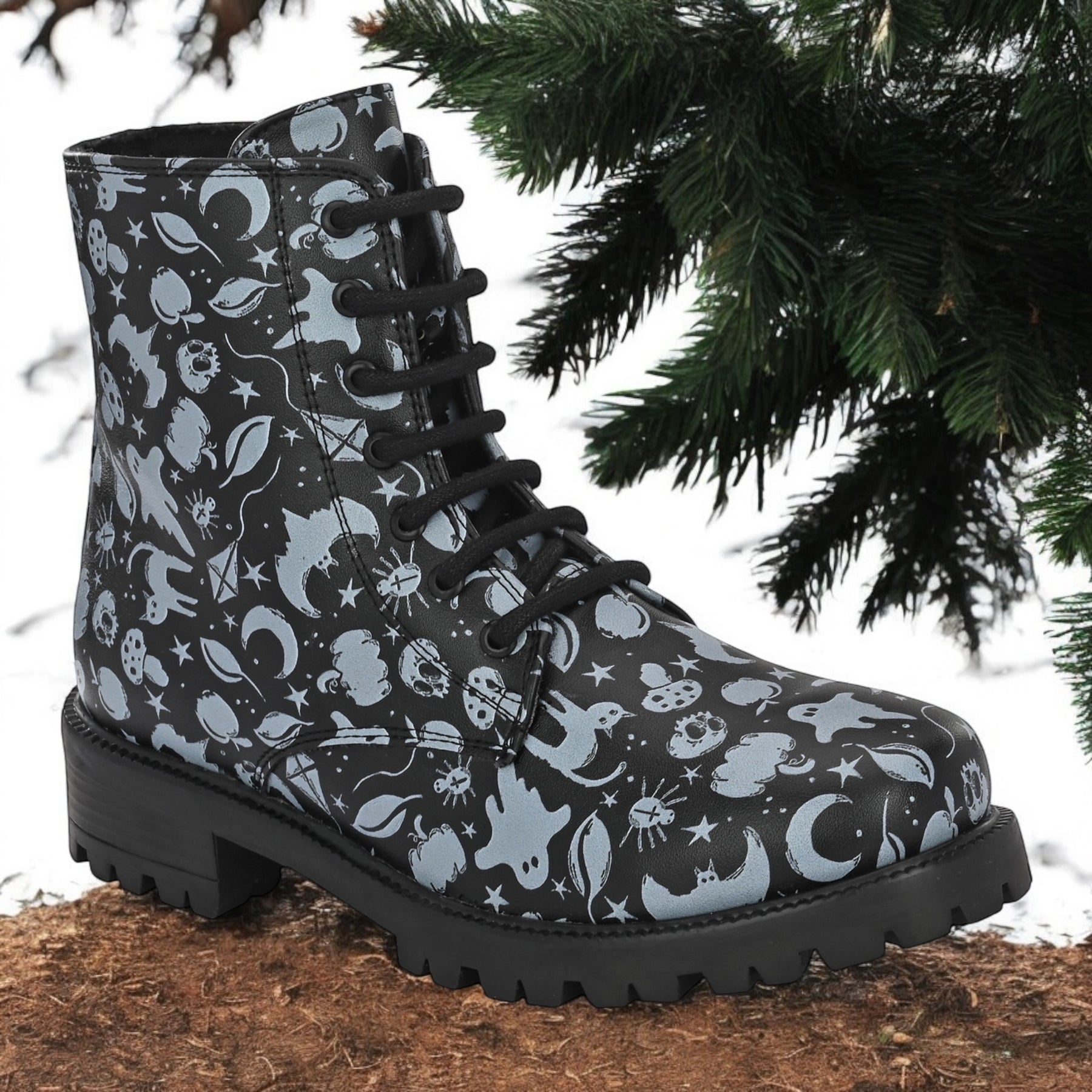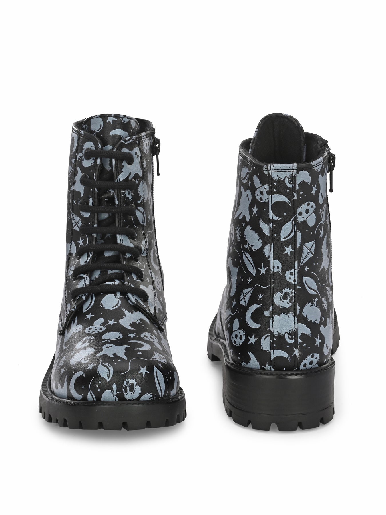 CARLO ROMANO BY WASAN BLACK-GREY COLOR VEGAN LEATHER PRINT LACE-UP ANKLE BOOTS WITH ZIP FOR WOMEN