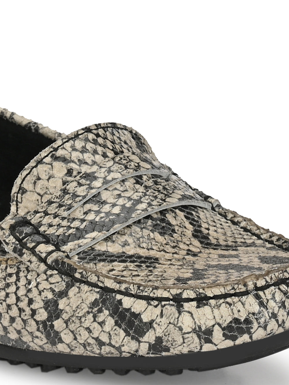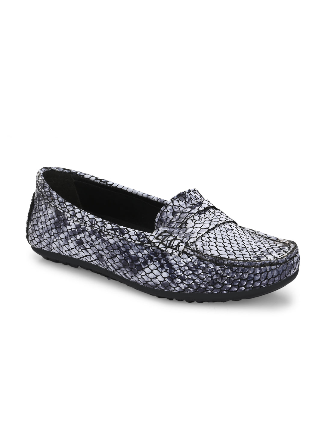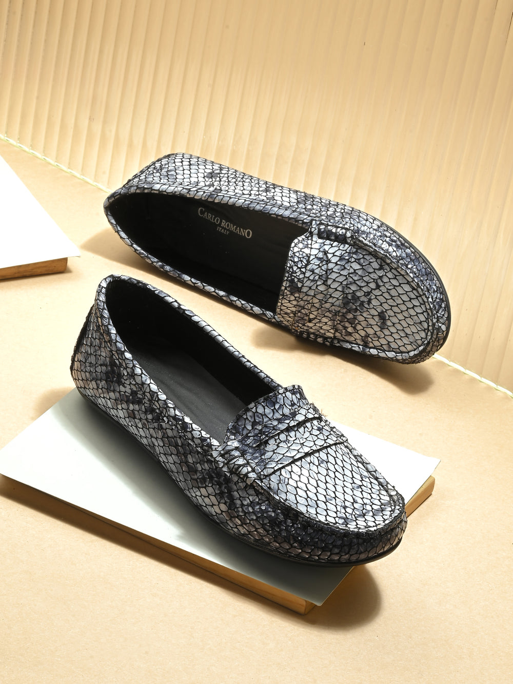 CARLO ROMANO BLACK COLOR SUPER COMFORTABLE SNAKE PRINTED LOAFER SHOES FOR WOMEN