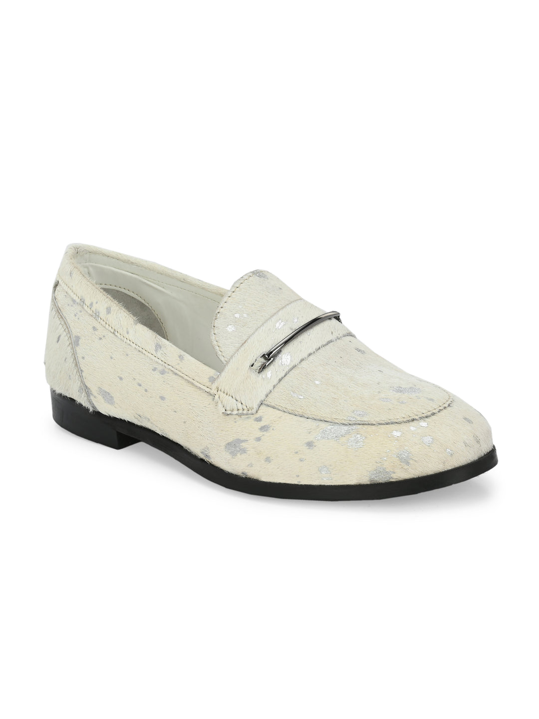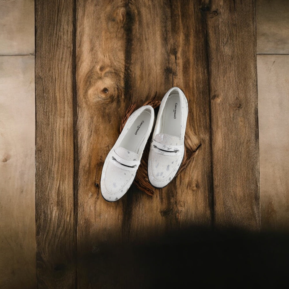 CARLO ROMANO HAIR OR FUR LEATHER WHITE-SILVER COLOR MOCCASIN SHOE FOR WOMEN