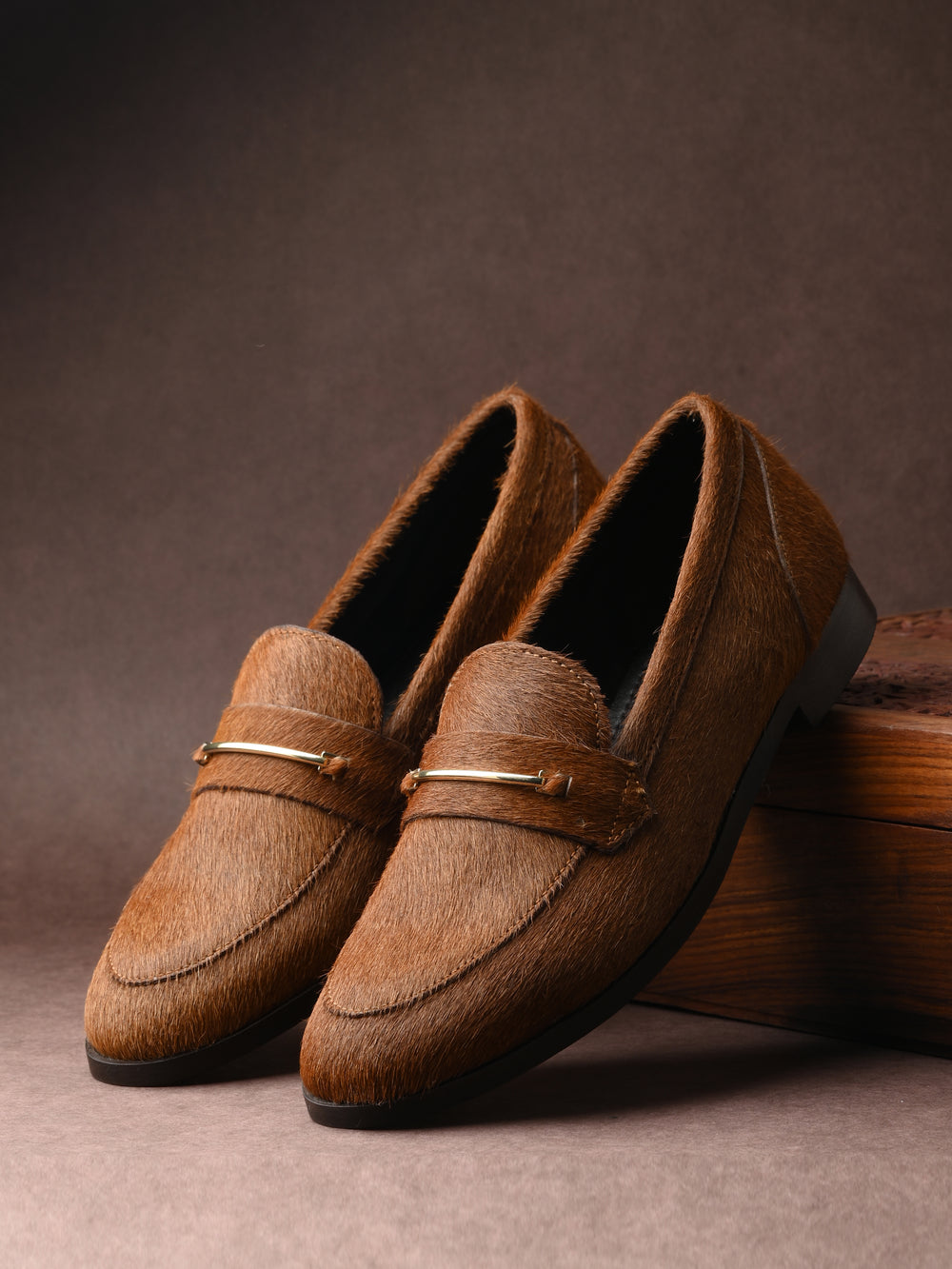 CARLO ROMANO HAIR OR FUR LEATHER BROWN COLOR MOCCASIN SHOE FOR WOMEN