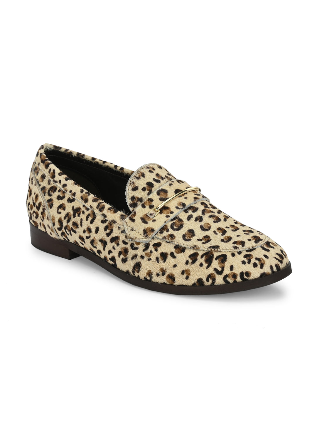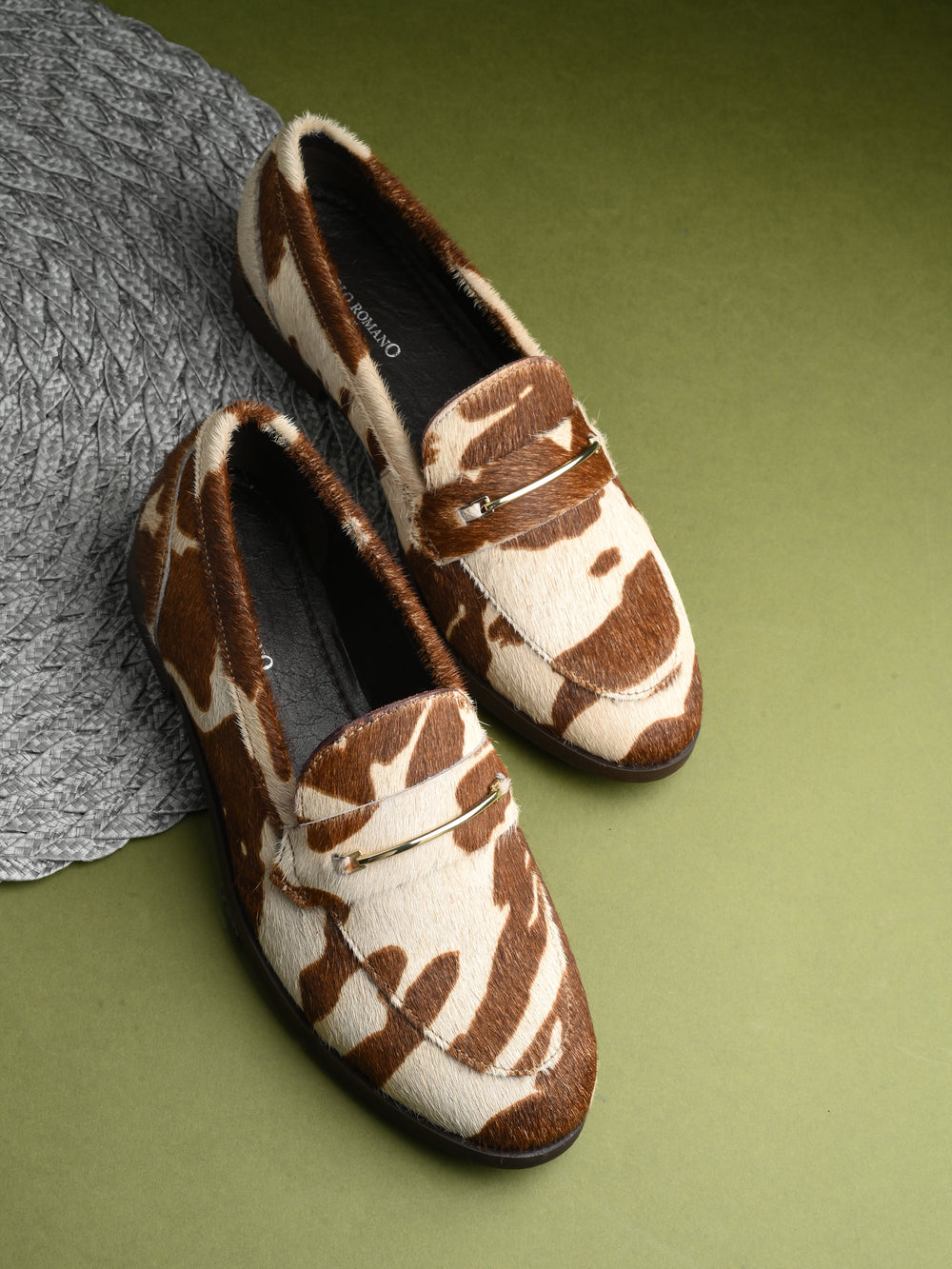 CARLO ROMANO HAIR OR FUR LEATHER BROWN-WHITE COLOR MOCCASIN SHOE FOR WOMEN
