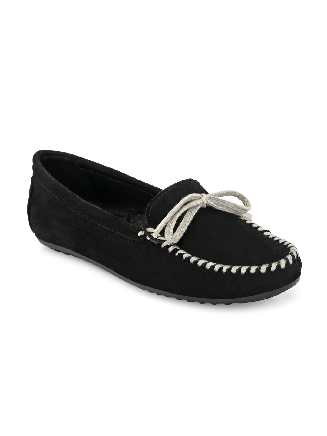 CARLO ROMANO BY WASAN GENUINE LEATHER BLACK COLOUR MOCCASIN FOR WOMEN