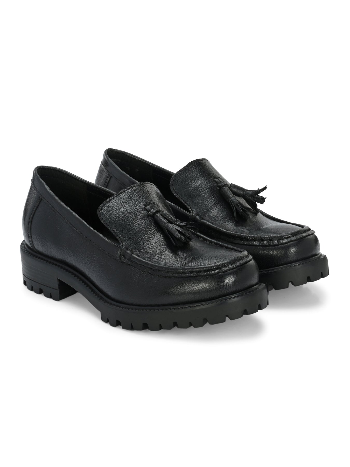 CARLO ROMANO BY WASAN GENUINE LEATHER BLACK COLOUR MOCCASIN FOR WOMEN