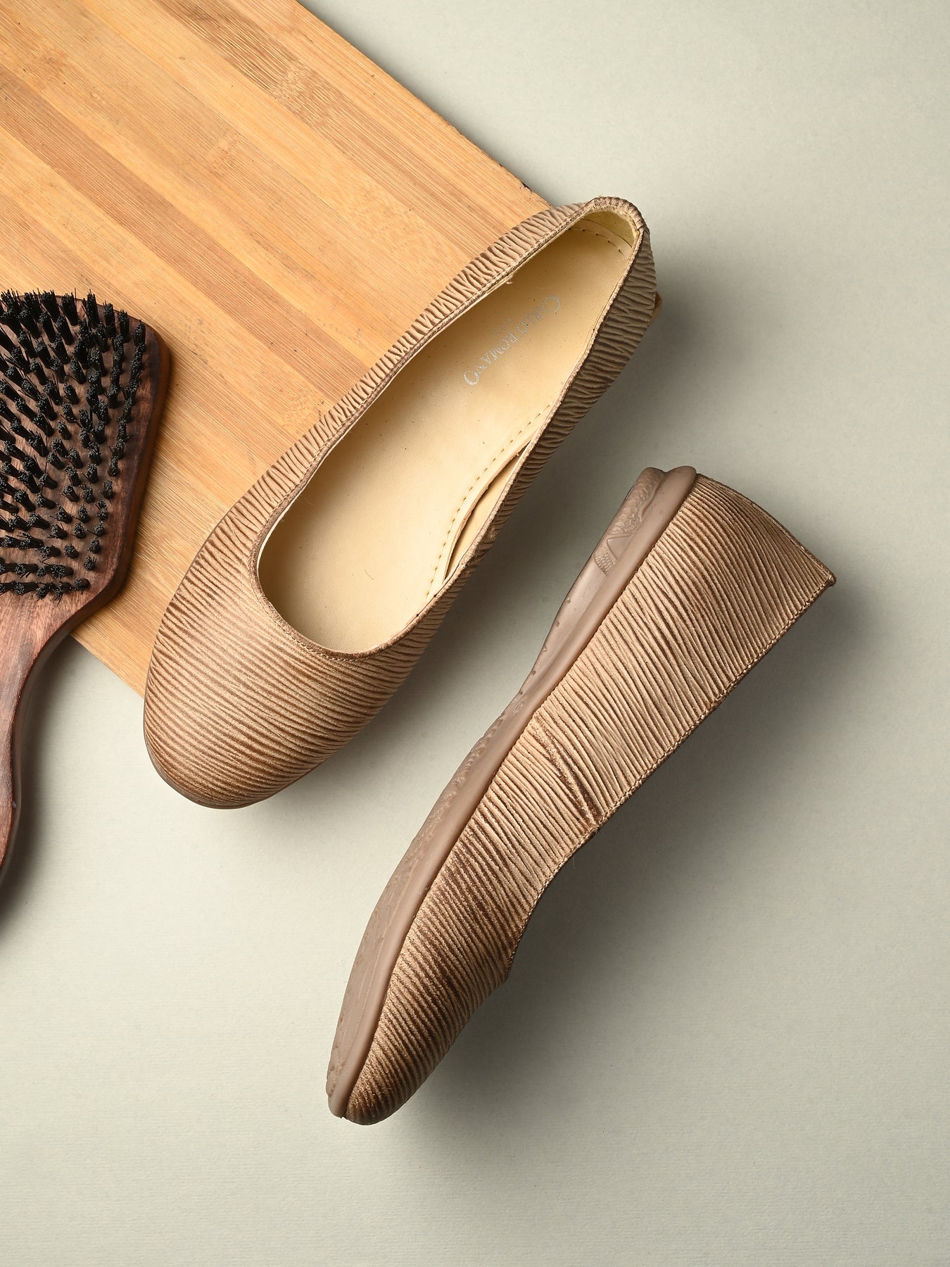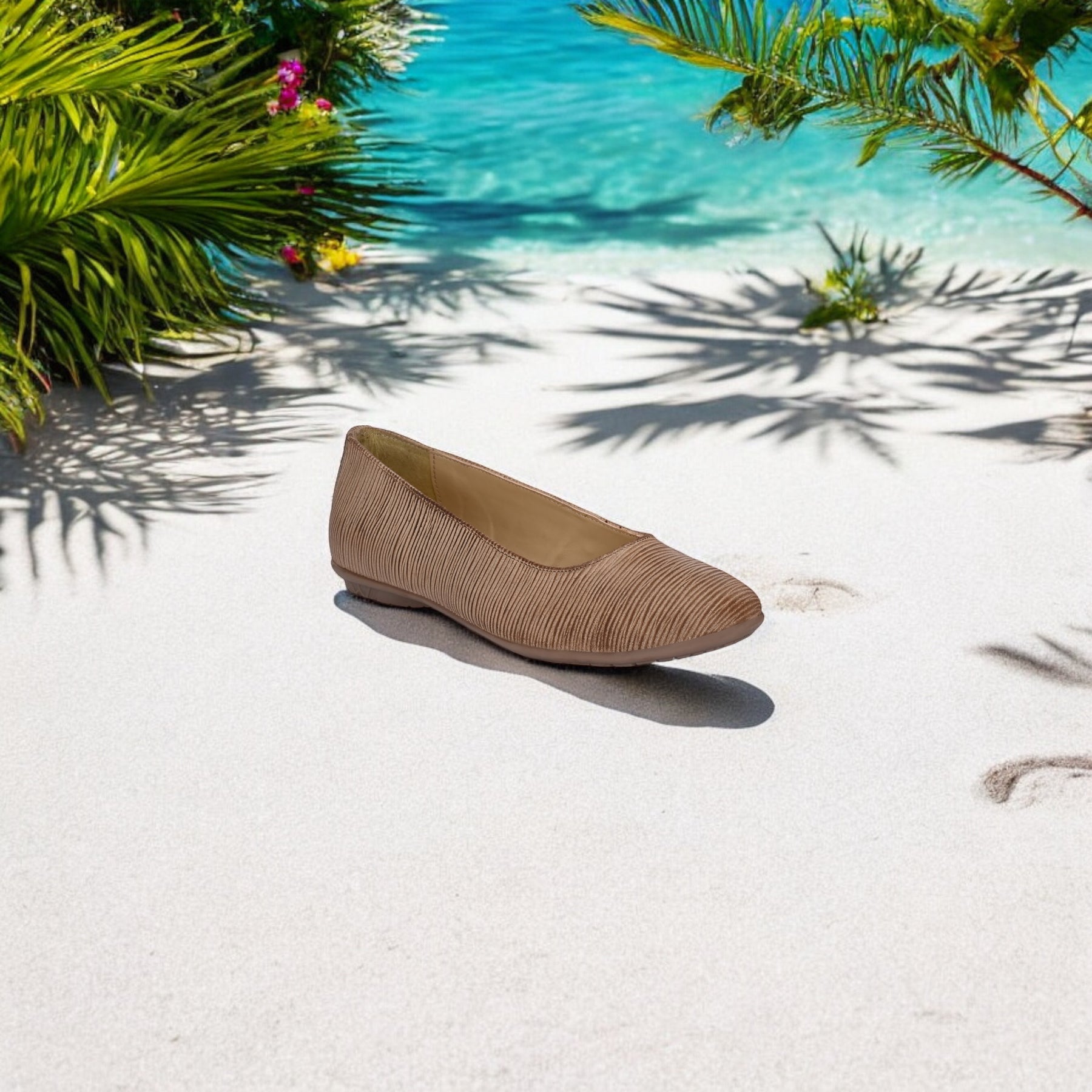 CARLO ROMANO BEIGE COLOR ITALIAN LV PRINTED SUEDE LEATHER BELLY FOR WOMEN