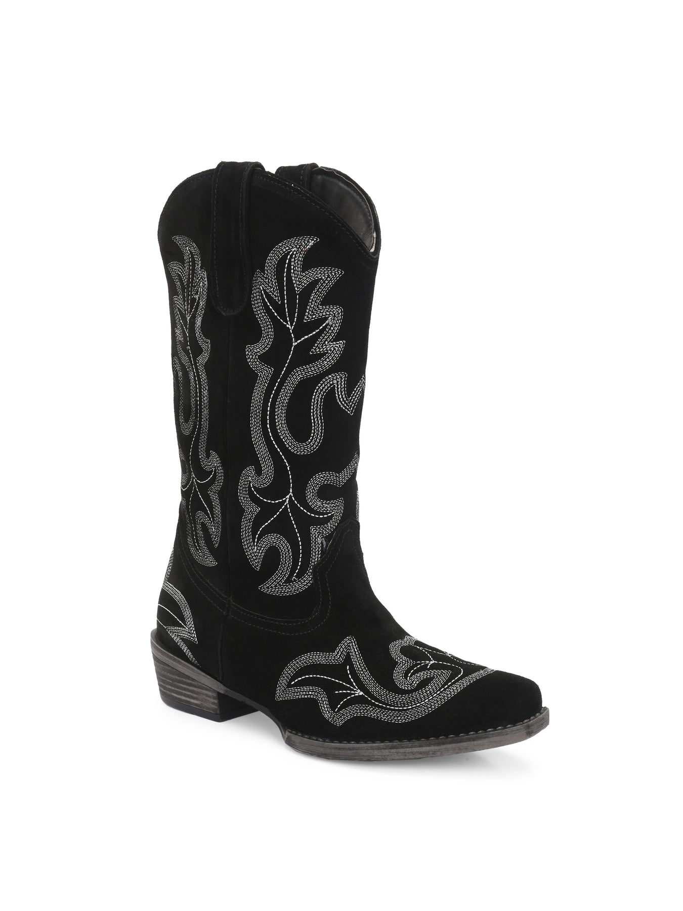 CARLO ROMANO BY WASAN  SUEDE LEATHER EMBROIDERY LONG COW BOOT FOR WOMEN